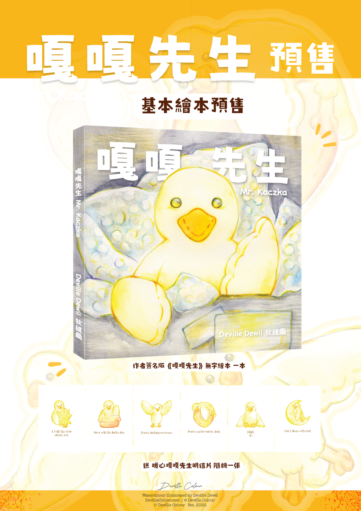 《嘎嘎先生》是藝術家 Deville Dewil 狄維爾的第一本原創水彩無字繪本。