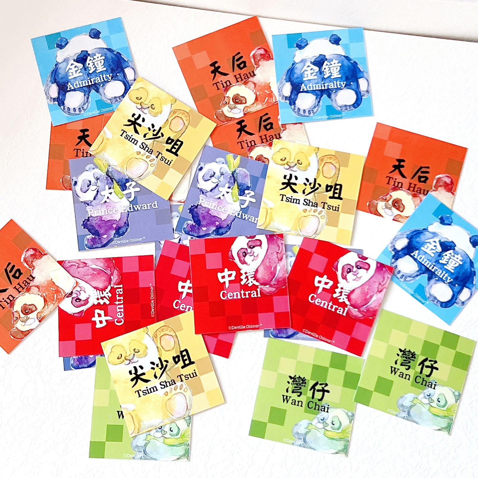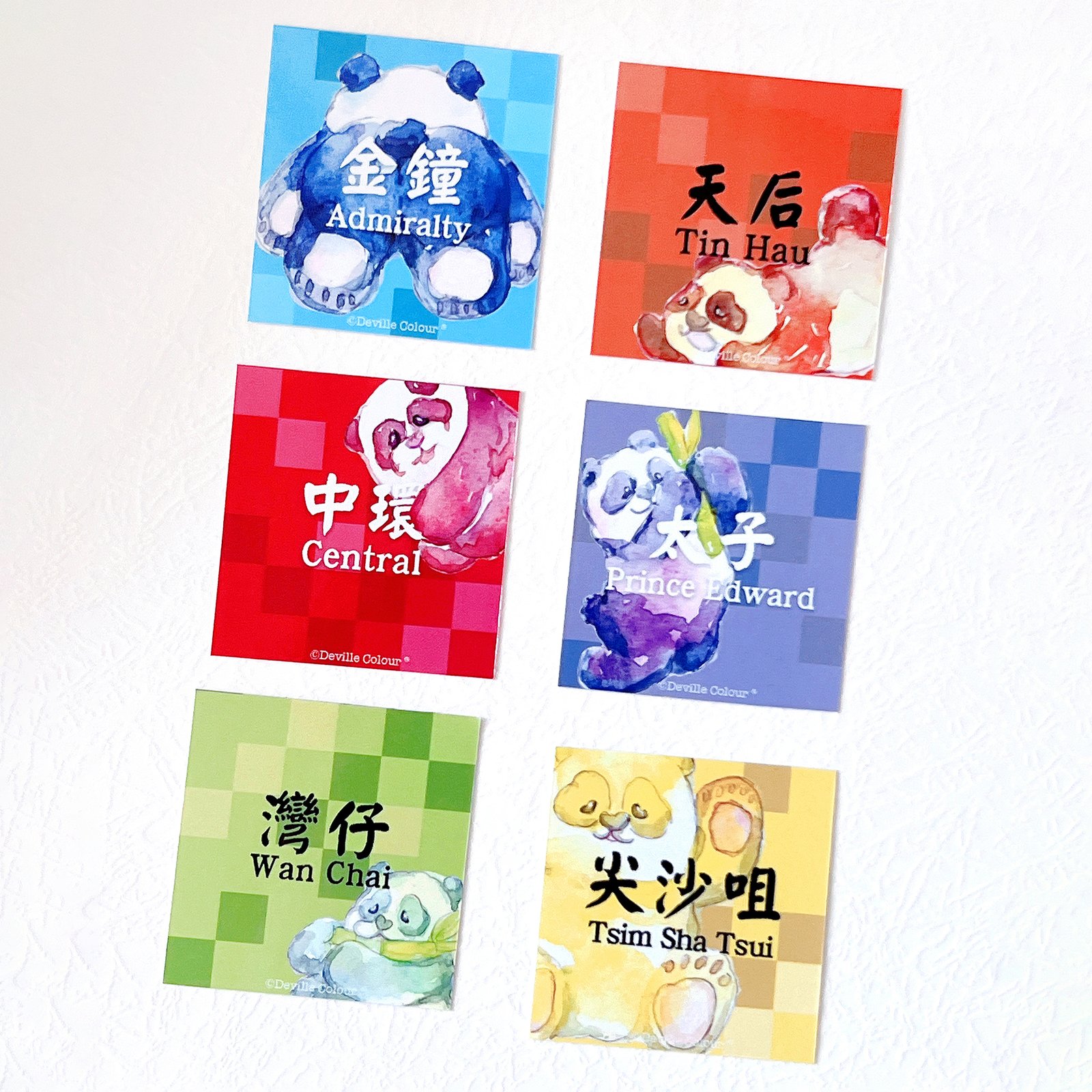 【Rainbow Panda HK Transport】Set of six, Red Central – 1pc, Orange Tin Hau – 1pc, Yellow Tsim Sha Tsui -1 pc, Green Wan Chai – 1pc, Blue Admiralty – 1 pc, Purple Prince Edward – 1pc