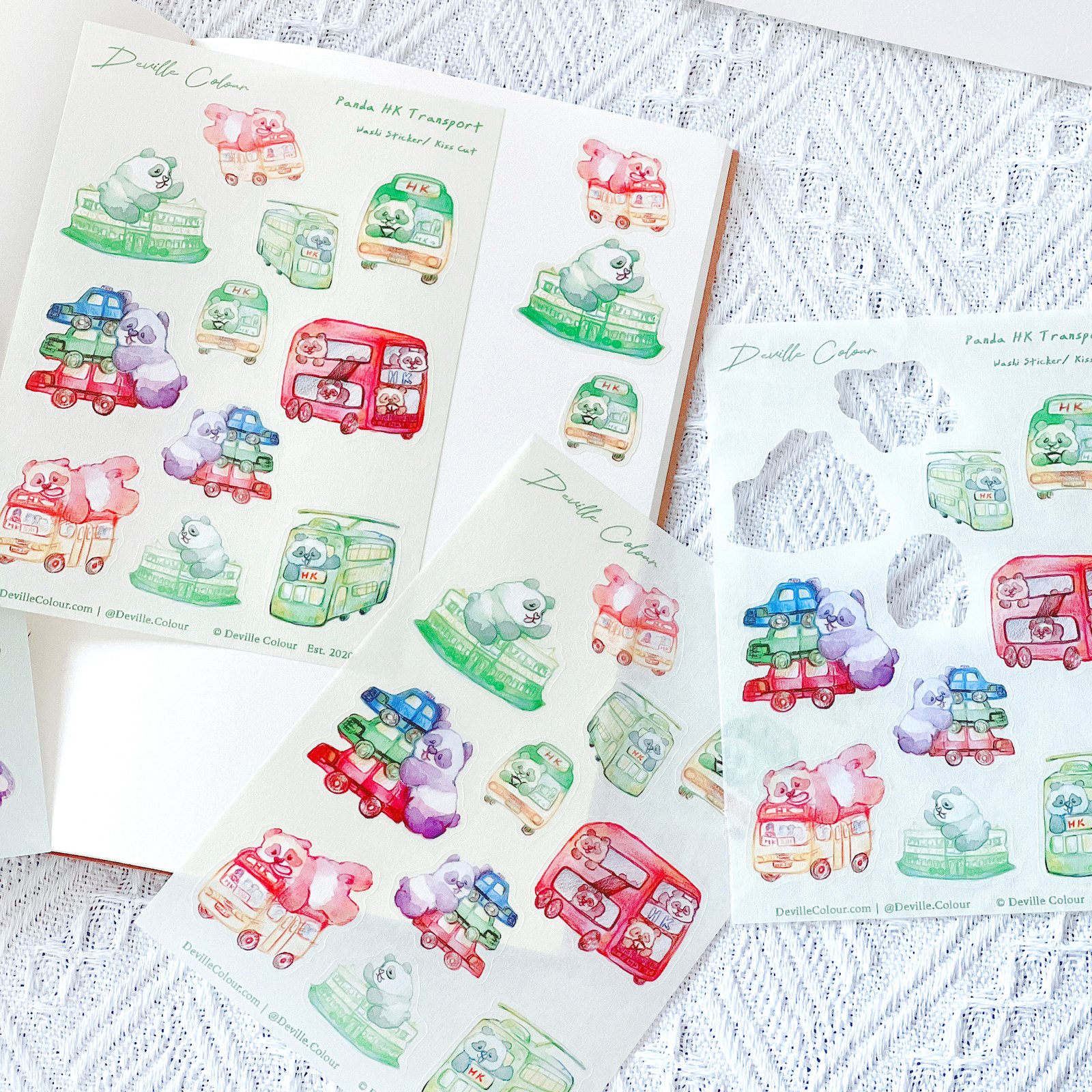 【Rainbow Panda Hong Kong Transport】Sticker Sheet Washi / Waterproof PET