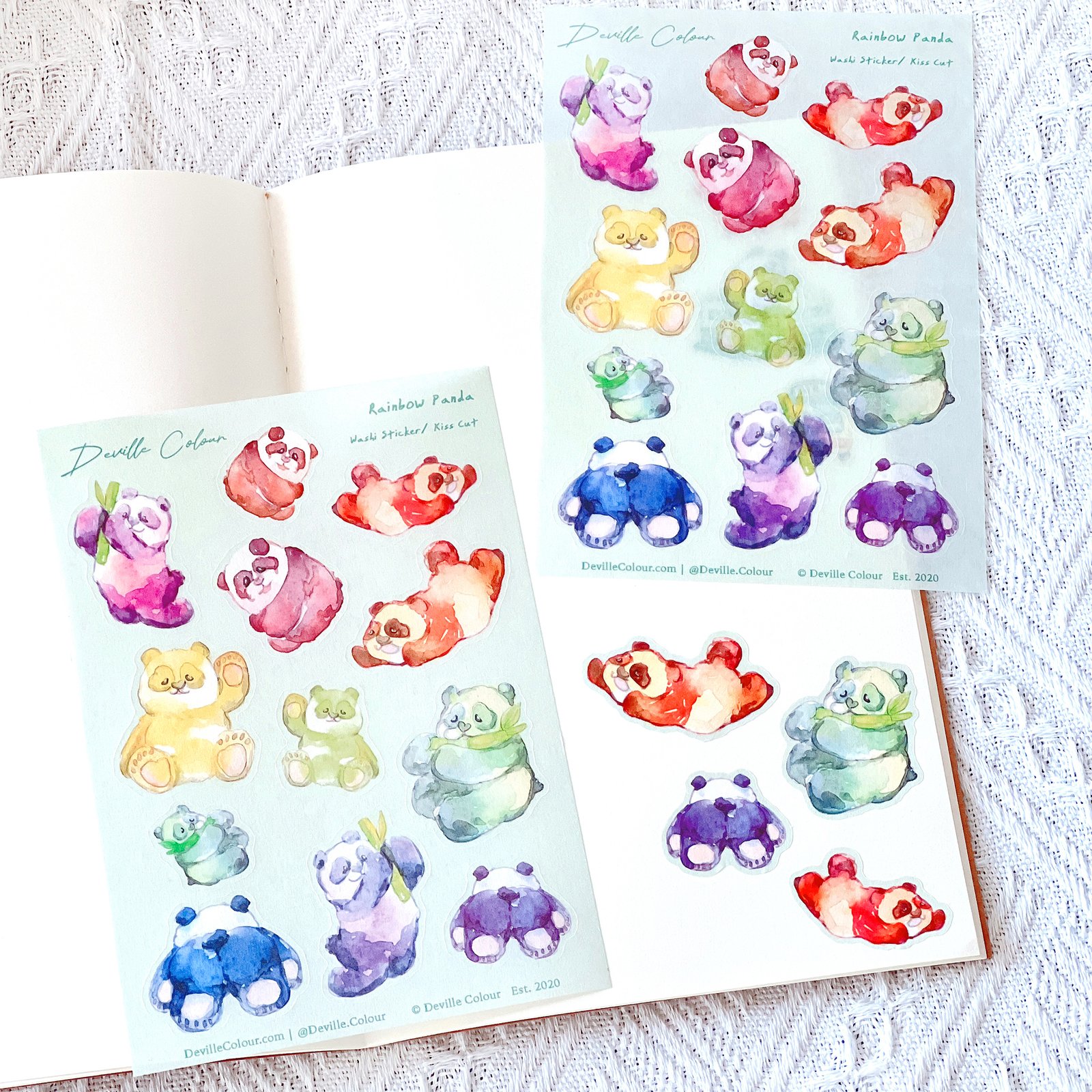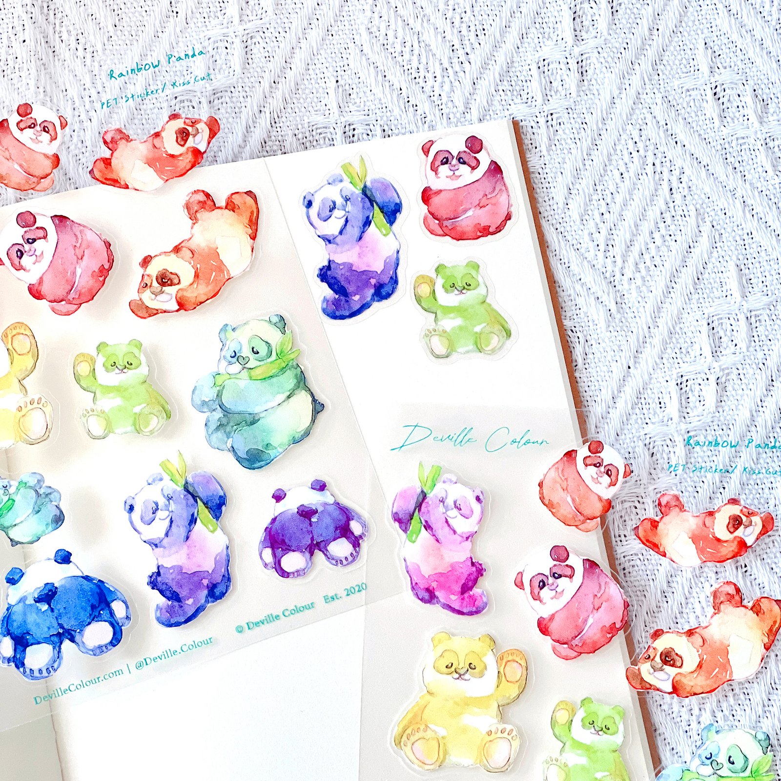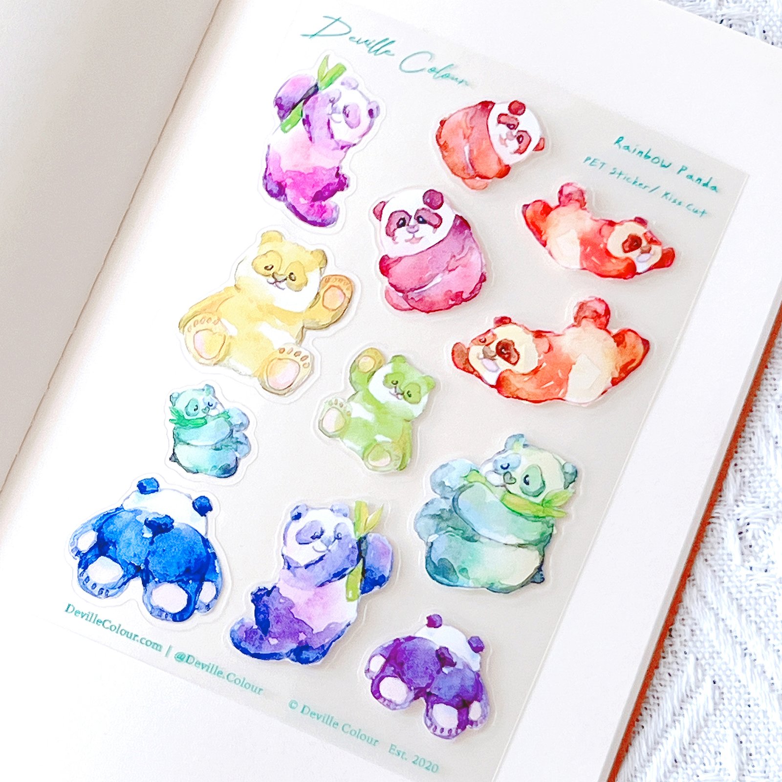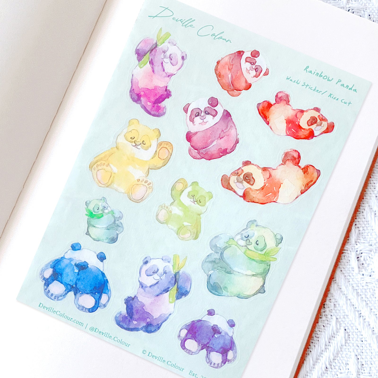 The “Rainbow Panda” series are originally watercolour illustrated and designed by Deville Dewil from Deville Colour Studio.