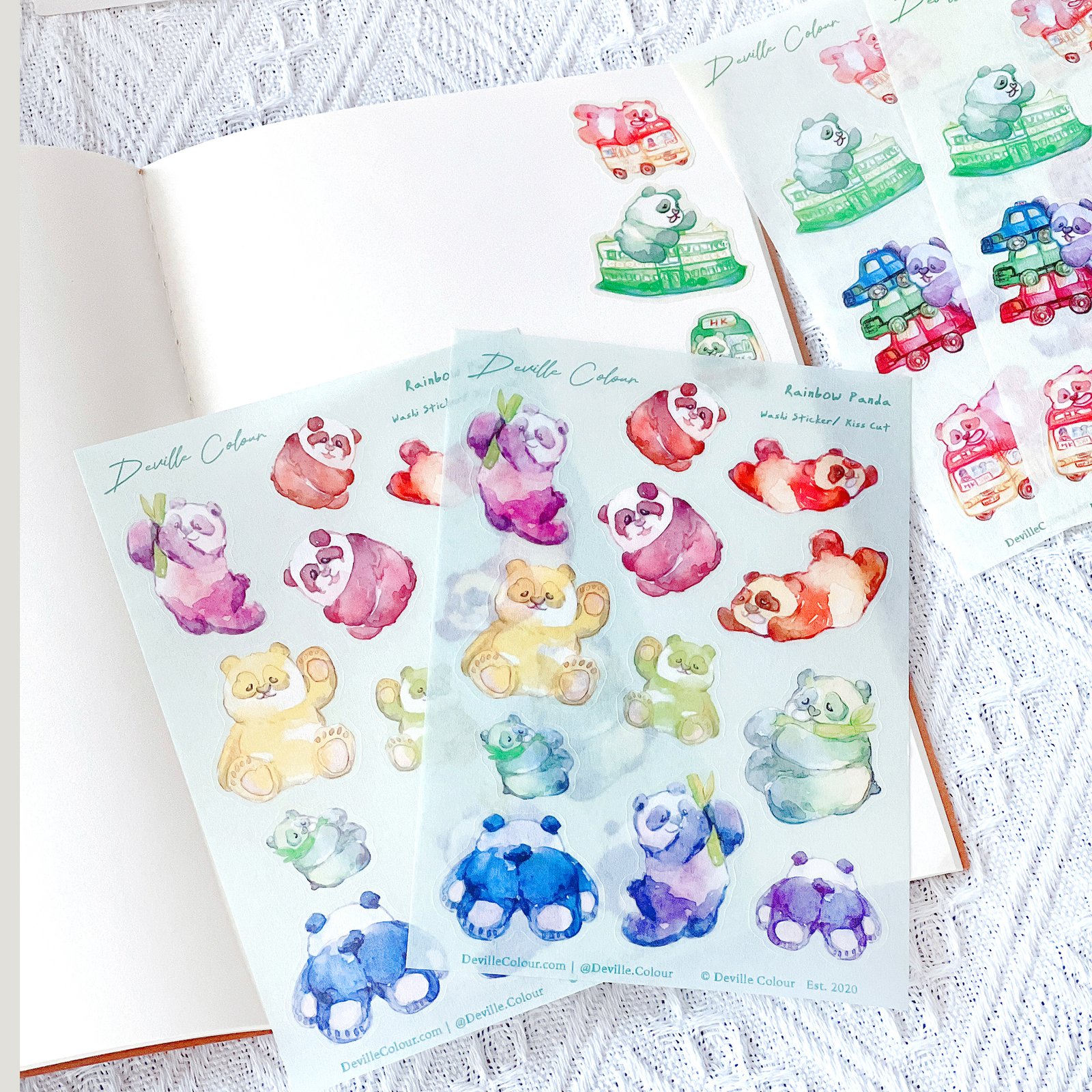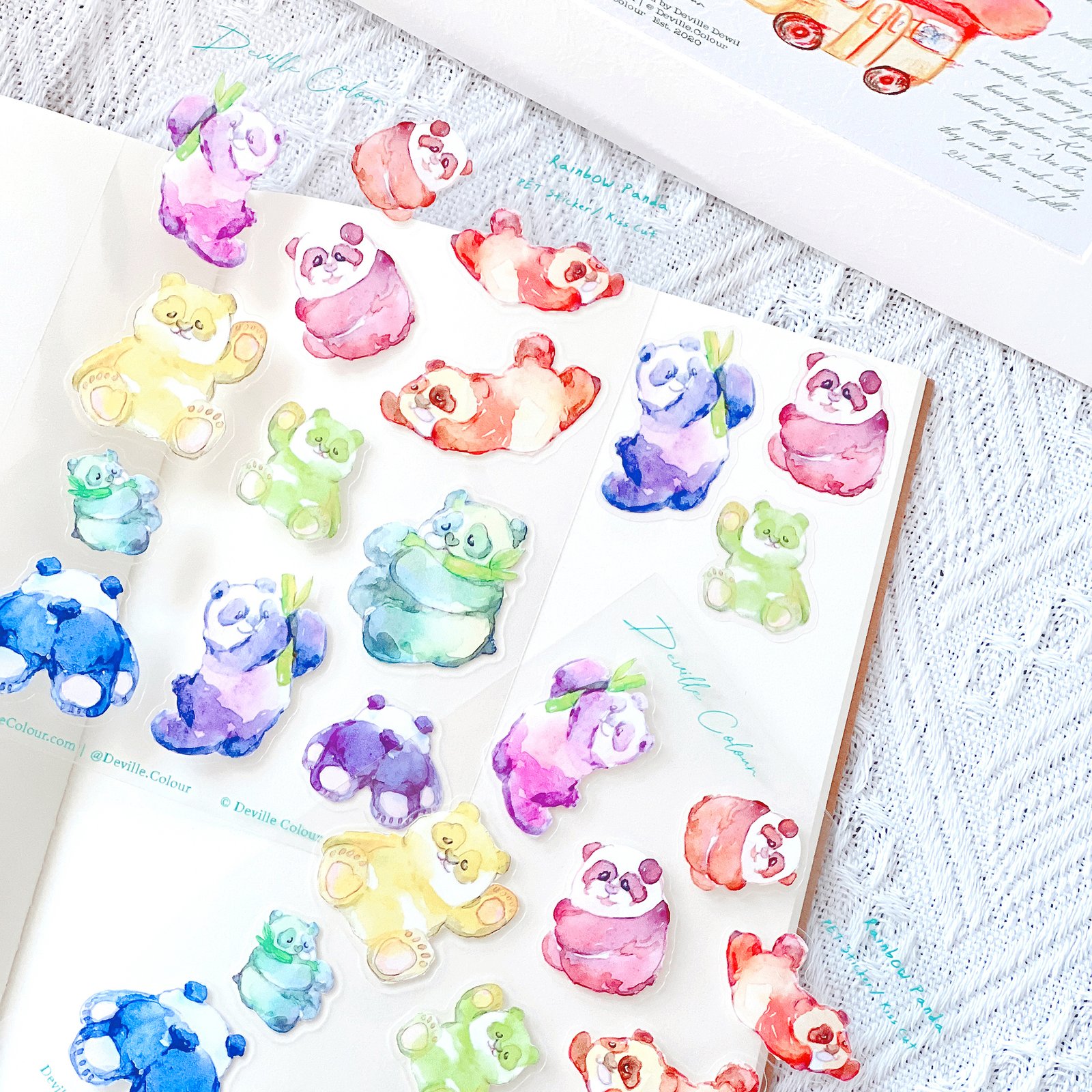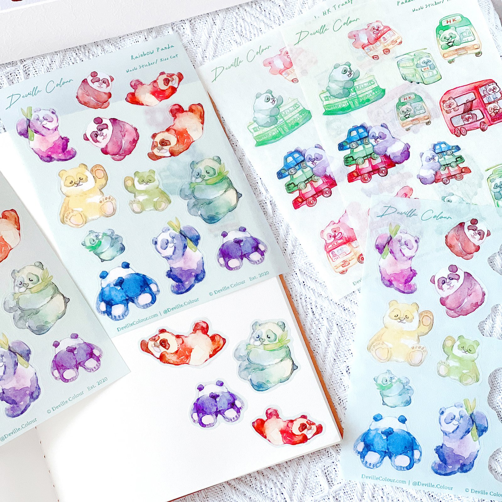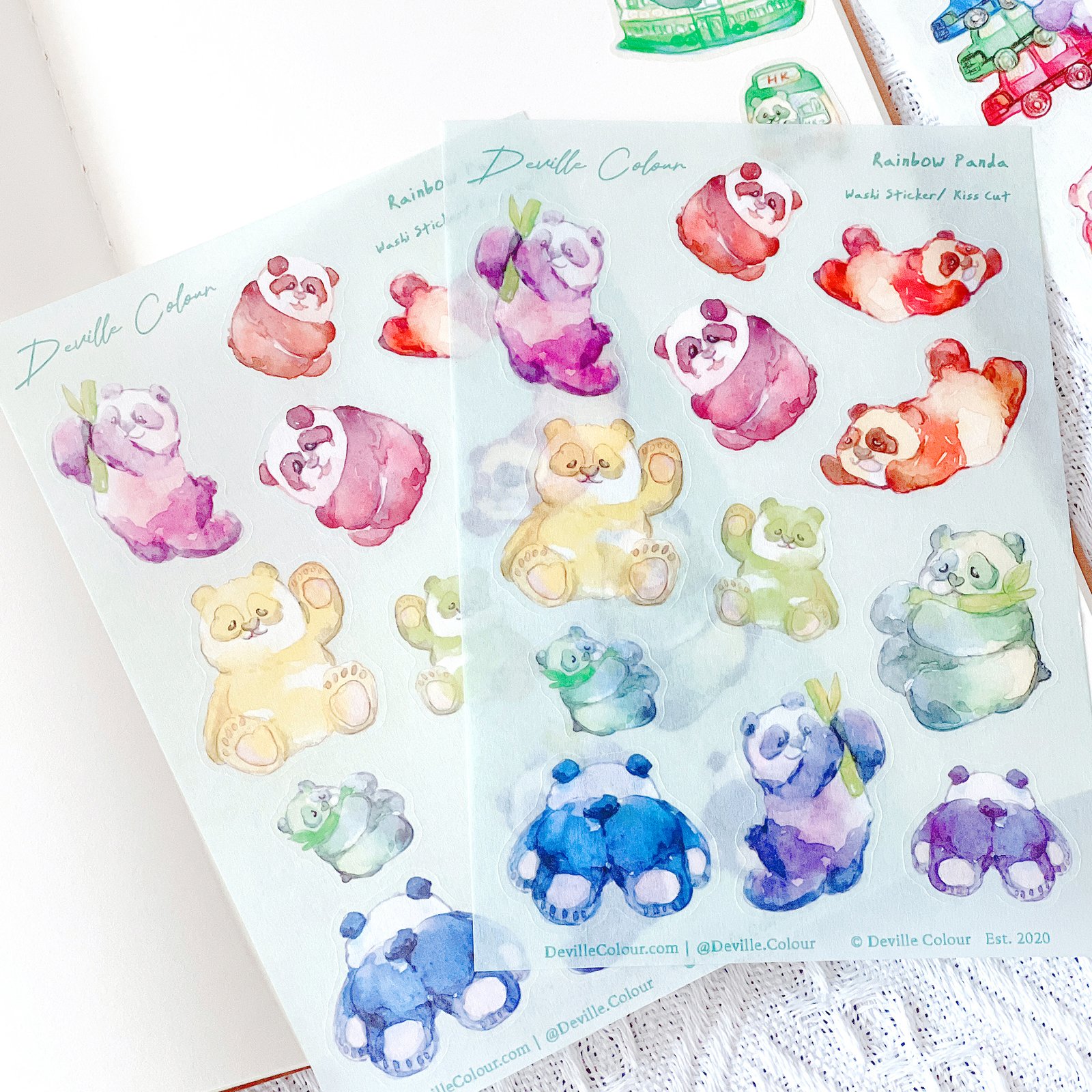 The “Rainbow Panda” series are originally watercolour illustrated and designed by Deville Dewil from Deville Colour Studio.